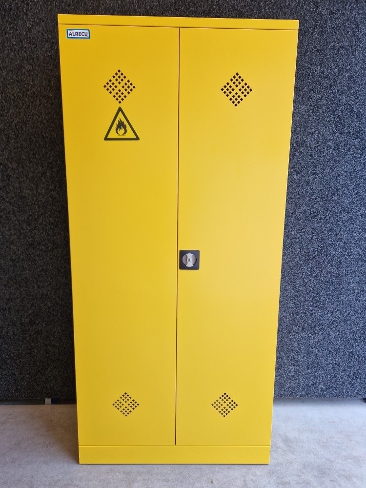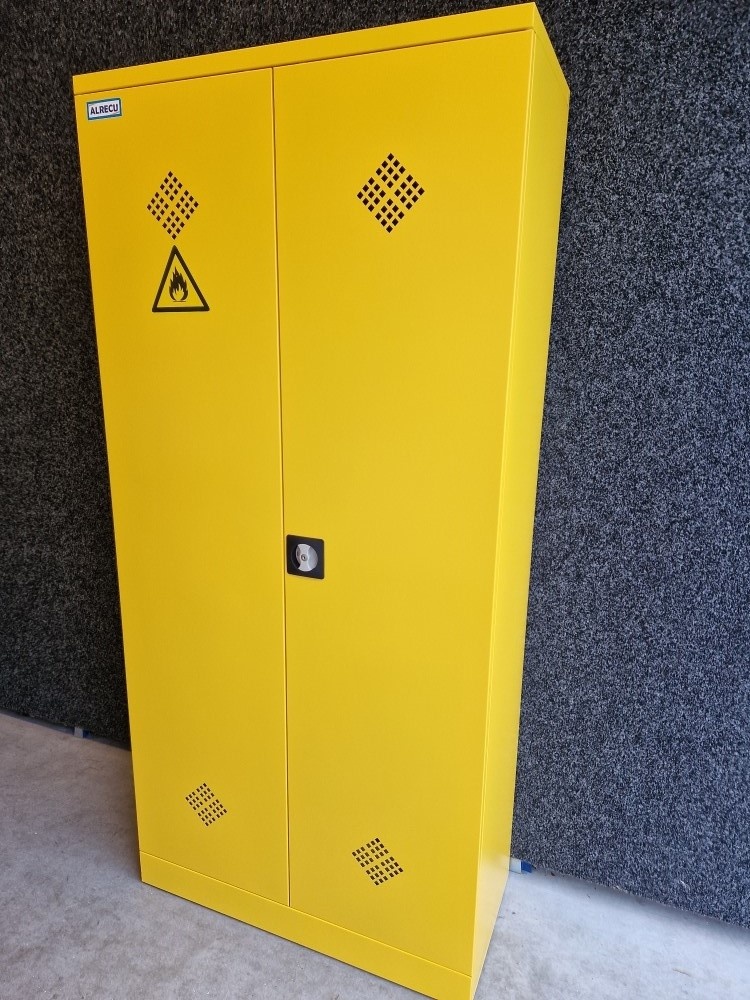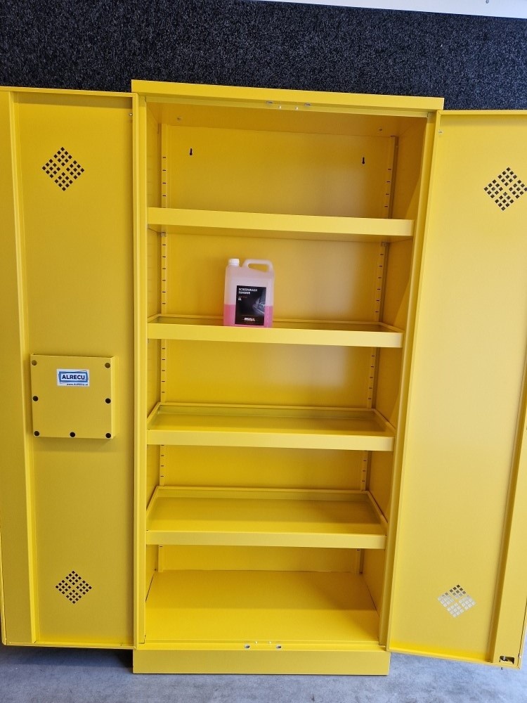 Degelijke stalen veiligheidskast, chemiekast, milieukast, PGS15 kast voor het veilig opbergen van diverse vloeibare of vaste milieubelastende stoffen.