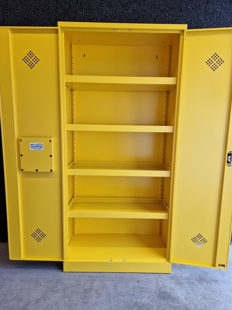 Deze PGS15 kast is geschikt voor de opslag van verpakte en milieubelastende stoffen maar is niet langdurig brandwerend.