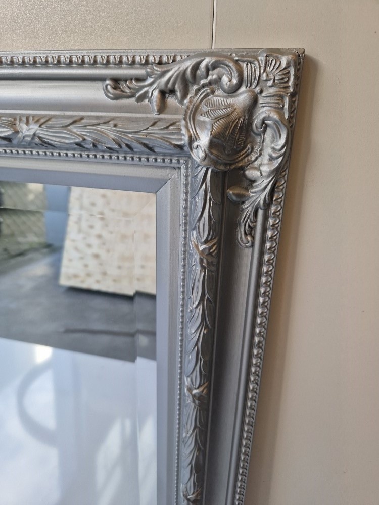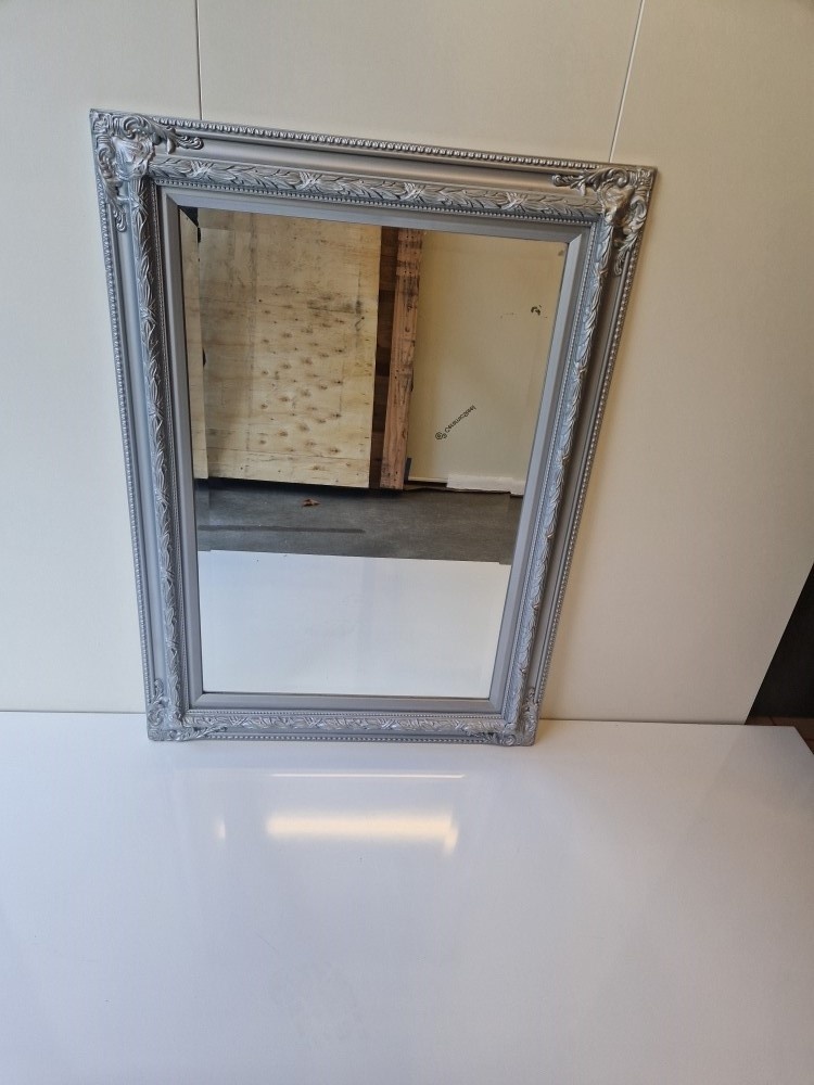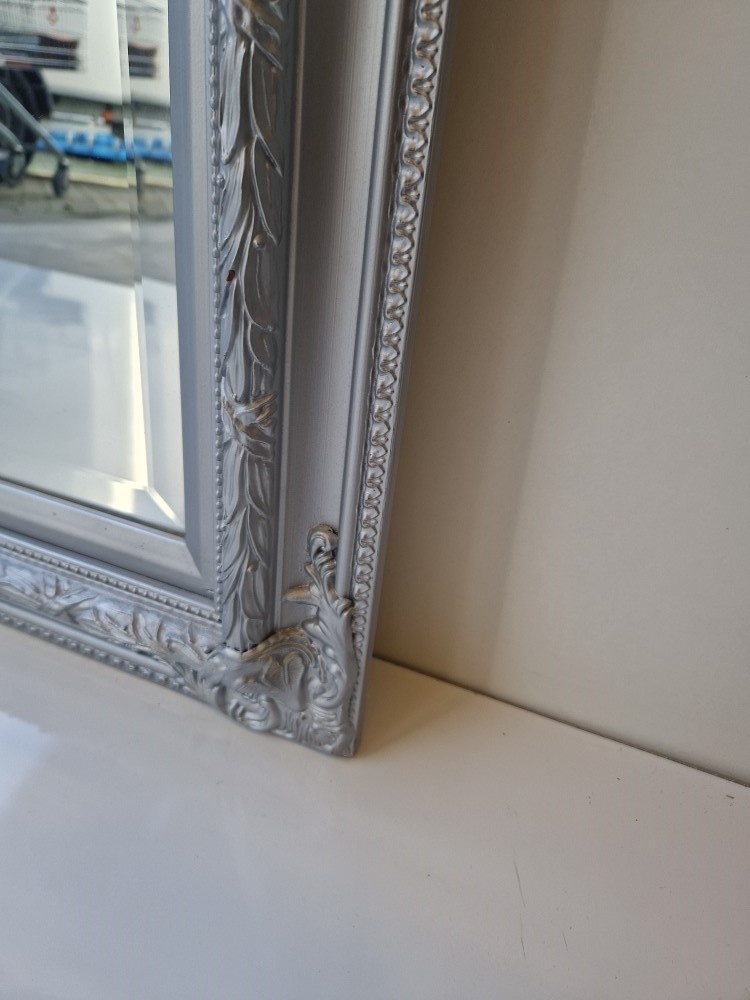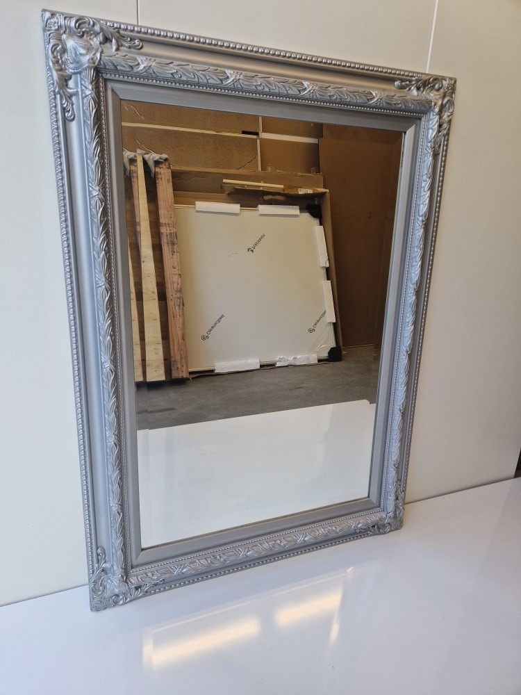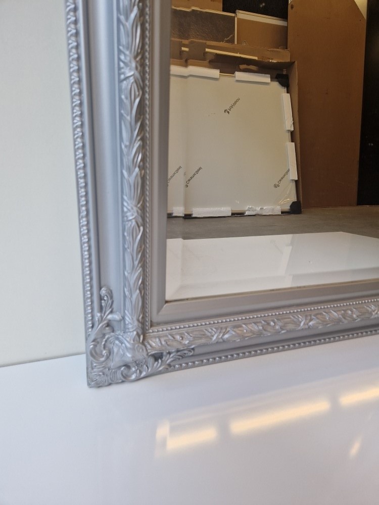 ProductomschrijvingGeslepen Barok Spiegel 90x70 cmGeslepen spiegel 90x70 cmZilver Luxe OrnamentShowmodel BarokspiegelGeringe beschadiging mogelijk