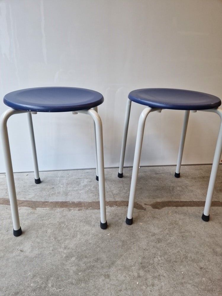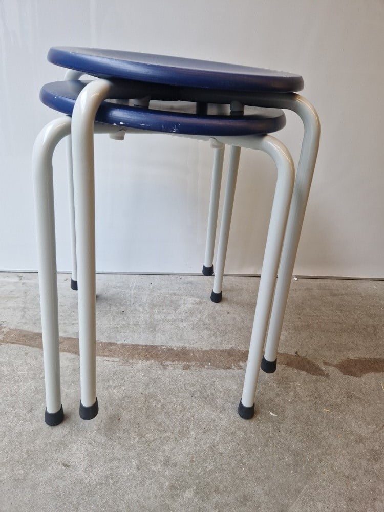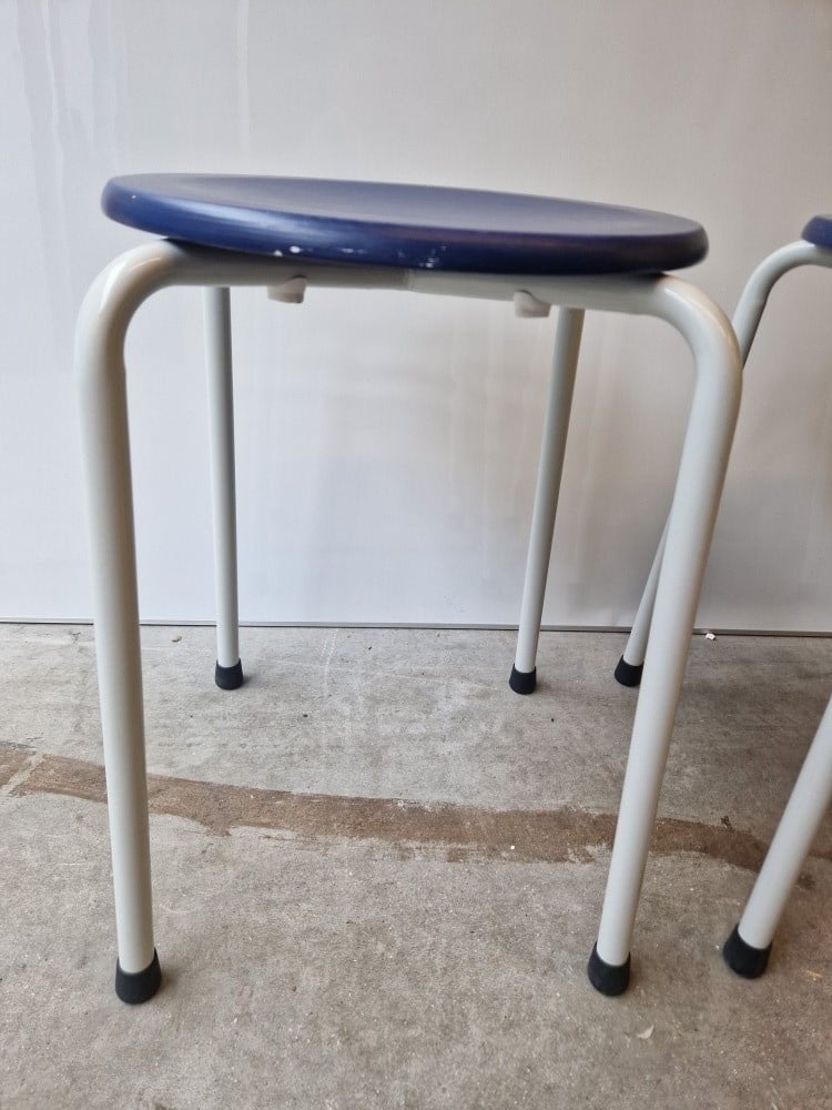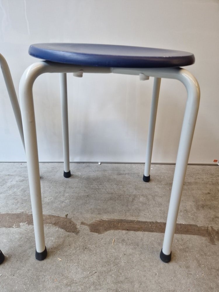 ProductomschrijvingStapelbare werkkrukGEBRUIKT GB132639in zeer goede staatstapelbaarzitting blauwonderstel grijs RAL7035